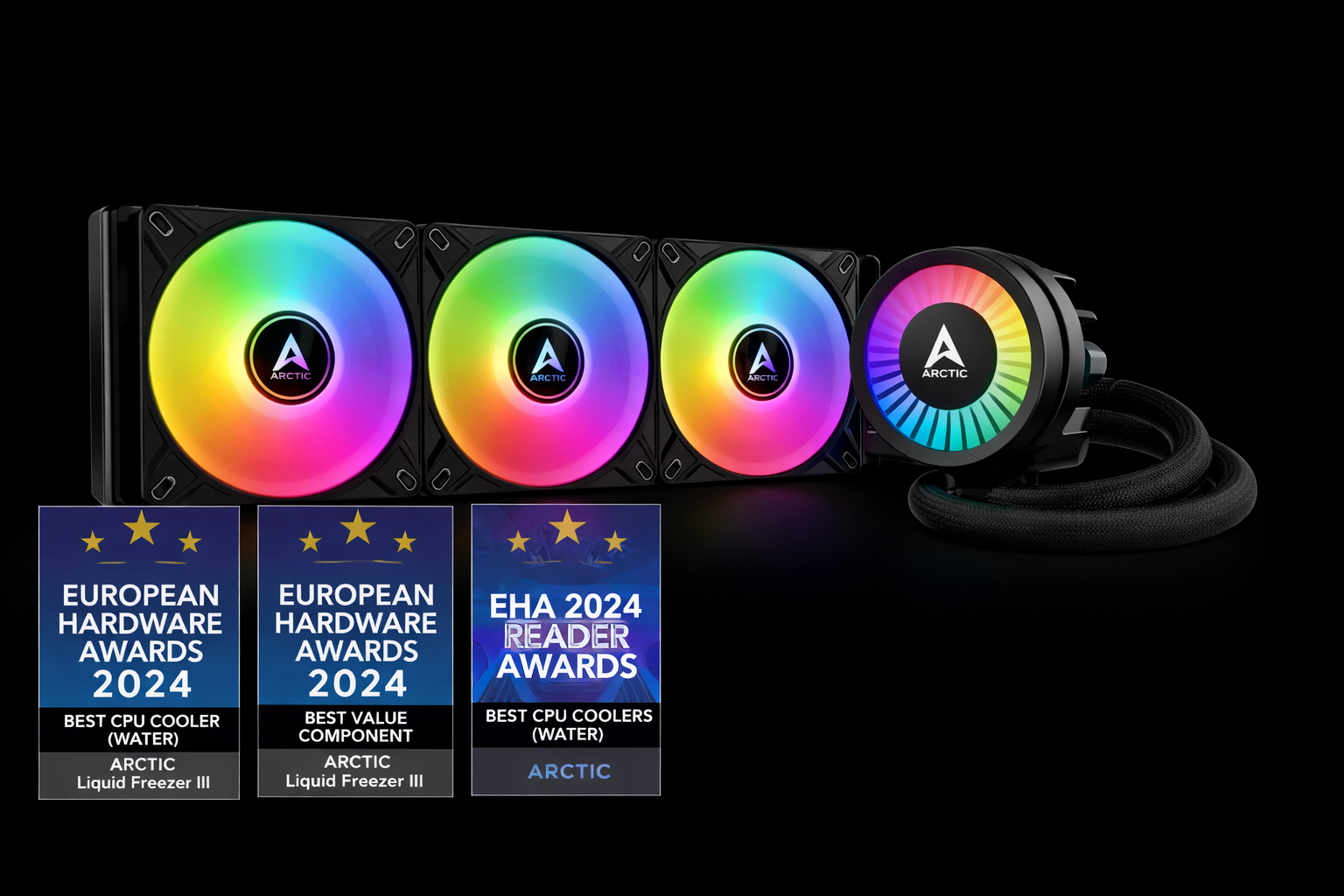 ARCTIC Liquid Freezer III Pro 360 A-RGB (noire) - Refroidisseur CPU AIO, 3 x 120 mm refroidissement à eau, radiateur 38 mm, pompe PWM, ventilateur VRM, AMD AM5/AM4, Intel LGA1851/1700 Cadre de contact